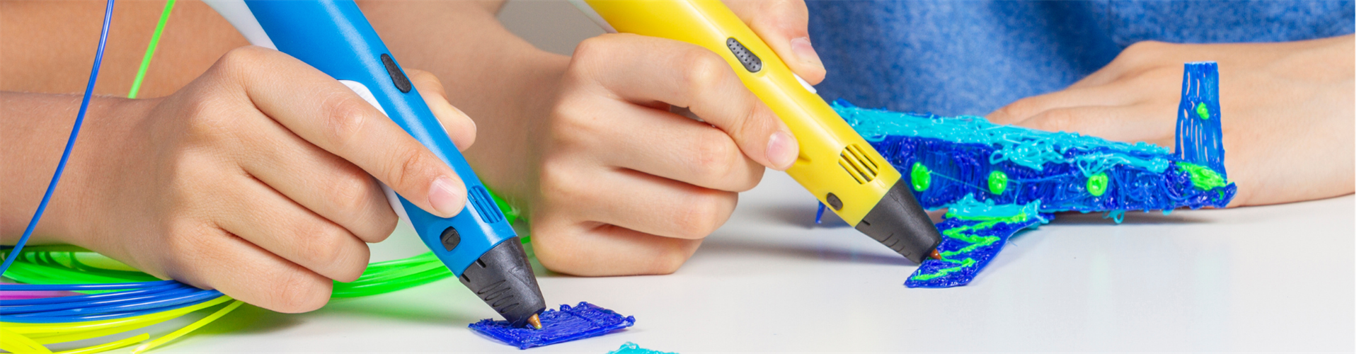 In deze workshop ontdekken leerlingen hoe je met een 3D-printpen niet alleen kunt tekenen, maar ook écht kunt bouwen. De pen werkt met filament: een soort plastic draad dat warm en kneedbaar uit de pen komt en direct weer hard wordt.