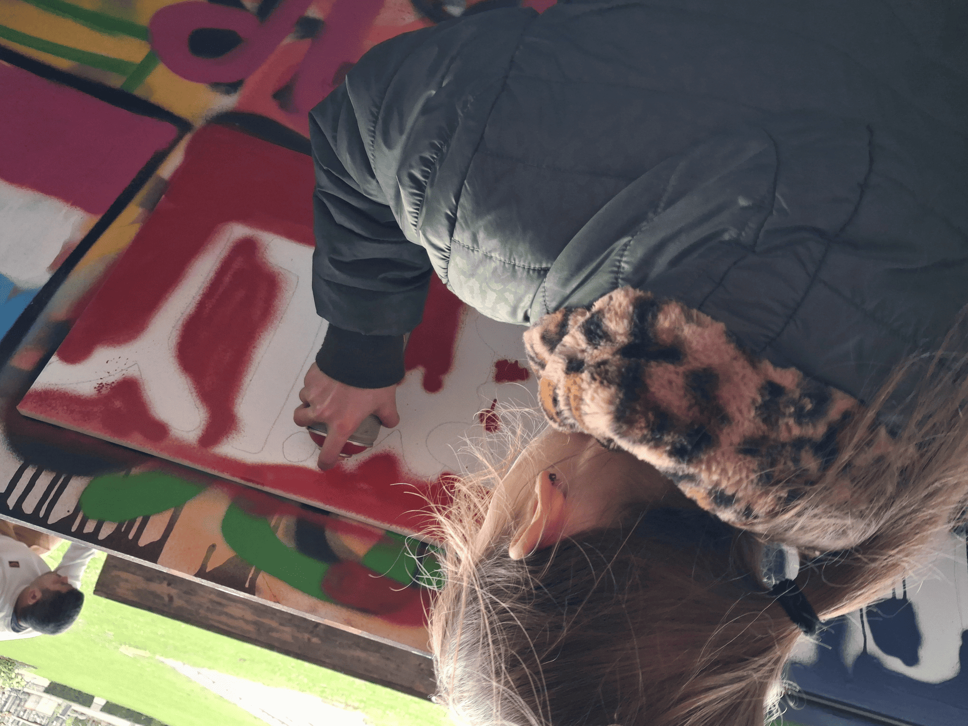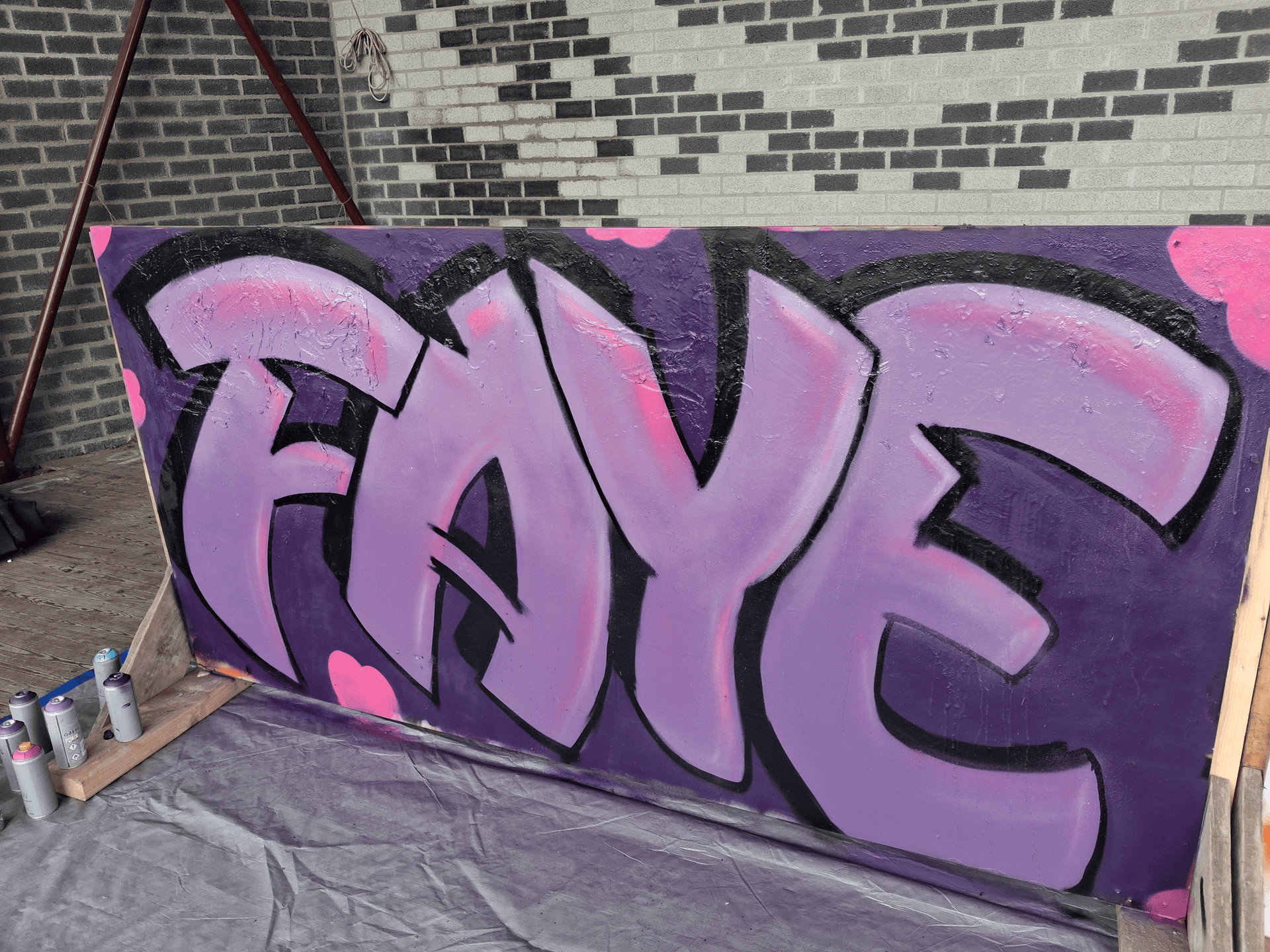 Het podium van het Floraliapark, gehuld in 'urban style', was het toneel voor een kleurrijk en creatief feestje, waar birthday-girl Faye en haar vriendinnen hun eigen kunstwerk hebben gecreëerd. Onder begeleiding van een echte graffiti-artist konden ze experimenteren met verschillende technieken en heel veel kleuren. Eerst voorzichtig een spraytje hier en daar en vervolgens als heuse graffiti artiesten vakkundig het canvas voorzien van vele lagen verf, om uiteindelijk met trots hun kunstwerk mee naar huis te nemen.