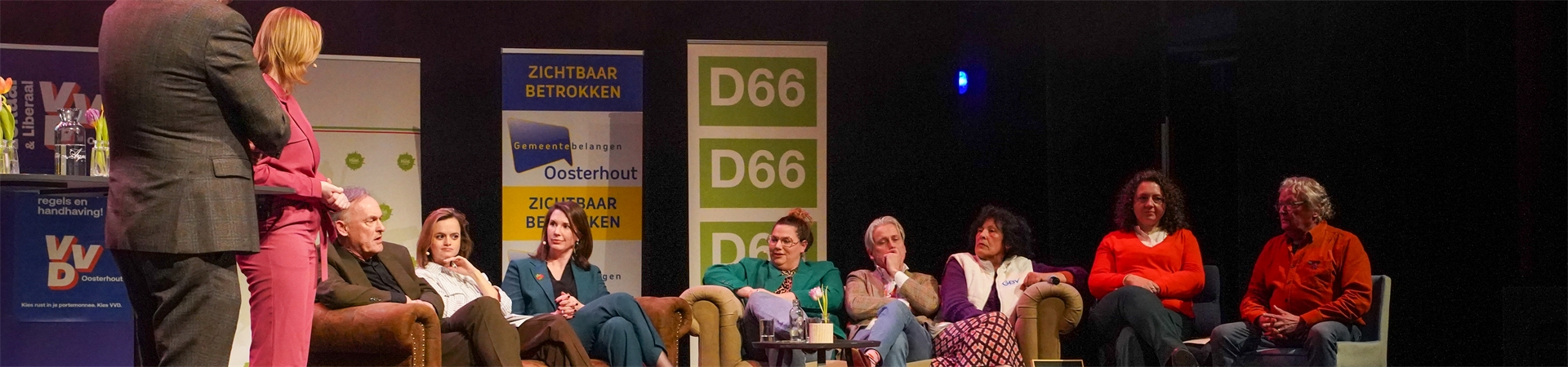 Acht partijen ging in de grote zaal van De Bussel onder leiding van Jaap Oomen en Fleur Weterings met elkaar in gesprek over de toekomst van cultuur in de gemeente Oosterhout. René van Bijnen (D66) en Mathijs Raaijmakers (VVD) beten het spits af. Zij bespraken ideeën om de samenwerking tussen het lokale culturele veld en het onderwijs te verbeteren. Zo wil D66 theaterbezoek onder scholieren bevorderen, waarbij er ook aandacht moet zijn voor het vervoer naar het theater. De VVD gaf aan dat de gemeente vooral moet faciliteren in samenwerkingen tussen cultuur, onderwijs en ondernemers.