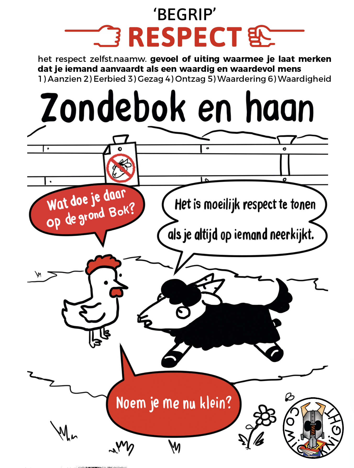 Onder de noemer: RESPECT GEEF JE DOOR laten we kinderen en jongeren aan het woord om hun visie en betekenis in beeld te brengen. Hoe denken zij over respect? Wat is hun boodschap? Welke voorbeelden gebruiken zij om dit te illustreren en verbeelden?